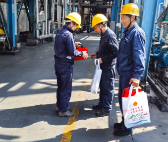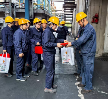 徐甜科長(zhǎng)帶領(lǐng)本部門(mén)全體人員到炭黑車間爐前、造粒崗位深切關(guān)懷,來(lái)到生產(chǎn)車間一線,詳細(xì)詢問(wèn)了大家的工作狀況和身體情況,叮囑大家在天氣炎熱,工作中一定要注意防暑降溫,合理安排作息,確保安全生產(chǎn)......一句句暖心叮囑。隨后,親手將公司精心準(zhǔn)備的“清涼禮包”、解暑飲品、清涼藥品等物資送到每位員工手中,每一份物資都承載著公司對(duì)員工的關(guān)愛(ài)。