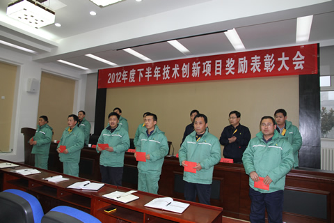 元月30日,公司2012年度下半年技術(shù)創(chuàng)新項(xiàng)目獎(jiǎng)勵(lì)表彰大會(huì)在多媒體會(huì)議室舉行。會(huì)上,公司獎(jiǎng)勵(lì)技術(shù)創(chuàng)新有關(guān)人員1.87萬(wàn)元,并號(hào)召全員行動(dòng)起來(lái),向他們學(xué)習(xí)創(chuàng)新、踐行創(chuàng)新,讓創(chuàng)新內(nèi)化為金能人的自覺(jué)行動(dòng),助力公司的持續(xù)健康發(fā)展。(圖為頒獎(jiǎng)現(xiàn)場(chǎng))。