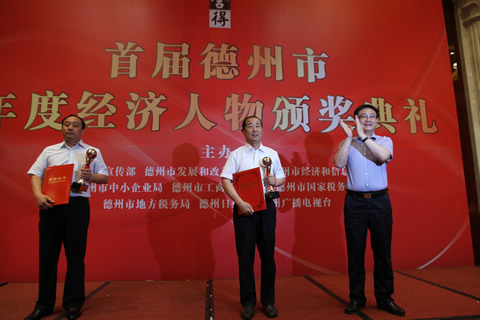 5月30日上午,首屆德州市年度經(jīng)濟(jì)人物頒獎(jiǎng)典禮在德州富豪康博酒店舉行,德州市委常委、常務(wù)副市長(zhǎng)徐春福,德州市委常委、宣傳部長(zhǎng)張傳忠,德州市人大副主任鐘玲,德州市政府副市長(zhǎng)康志民,德州市政協(xié)副主席楊光來(lái)等領(lǐng)導(dǎo)出席,并為獲獎(jiǎng)企業(yè)家頒獎(jiǎng),公司董事長(zhǎng)秦慶平作為全市的十大經(jīng)濟(jì)人物,受到了隆重表彰。