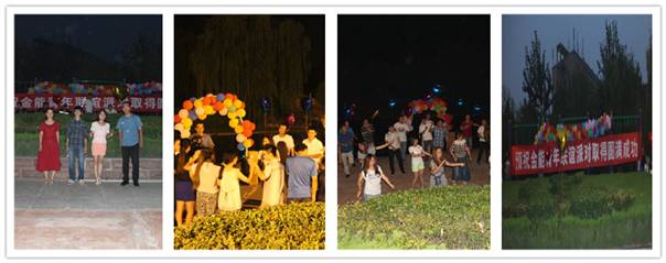 20日晚的公司倪倫河畔,河水在靜靜流淌,星光璀璨,月兒朦朧。環(huán)繞的親水平臺,燈火通明,彩燈搖曳,五顏六色的氣球簇成的拱門格外漂亮,歡歌笑語,熱鬧非凡,劃破了夜的寧靜,洋溢著一派歡快的氣氛,公司的青年聯(lián)誼會在此舉行。