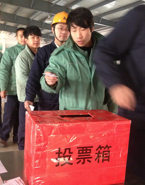 對測評較差人員,公司予以免職,空缺崗位重新競聘上崗(圖為下級測評投票中)