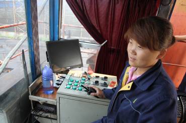 筆者去查了石桂英的出勤,6月出勤30天,加班3天;7月出勤31天,加班1.5天;8月出勤30天,加班2天。據(jù)其同事講,8月份,她班上的另一堆取料機(jī)司機(jī)因家中有事請(qǐng)假,人員忙不過來,她同時(shí)操作兩臺(tái)堆取料機(jī),她瘦弱的身影在兩條軌道間穿梭,在7米多高的架子上爬上爬下,忙起來飯都顧不上吃,一個(gè)班下來,要上下10多次,衣服濕了又干,干了又濕,但她默默地認(rèn)真工作著,無一句怨言,聽別人說,在崗位缺員的情況下,她曾創(chuàng)下了連續(xù)1個(gè)半月同時(shí)操作兩臺(tái)堆取料機(jī)的記錄。